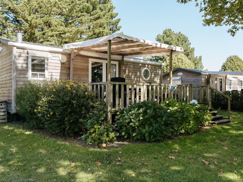 Discover our Comfort Mobile Home, a perfect accommodation for families or groups of up to 4 people seeking comfort and accessibility at excellent value. This model is specially designed for people with reduced mobility, with a practical layout and an exterior ramp providing easy access to all areas. Enjoy a large accessible semi-covered terrace, a spacious and bright living area, two comfortable bedrooms (one with a double bed of 160 x 200 cm and another with bunk beds), as well as a fully equipped bathroom. Located on the Conleau peninsula, this accommodation is the perfect choice for a stay in Southern Brittany, offering practicality, comfort, and an immersive experience in Brittany’s natural beauty.